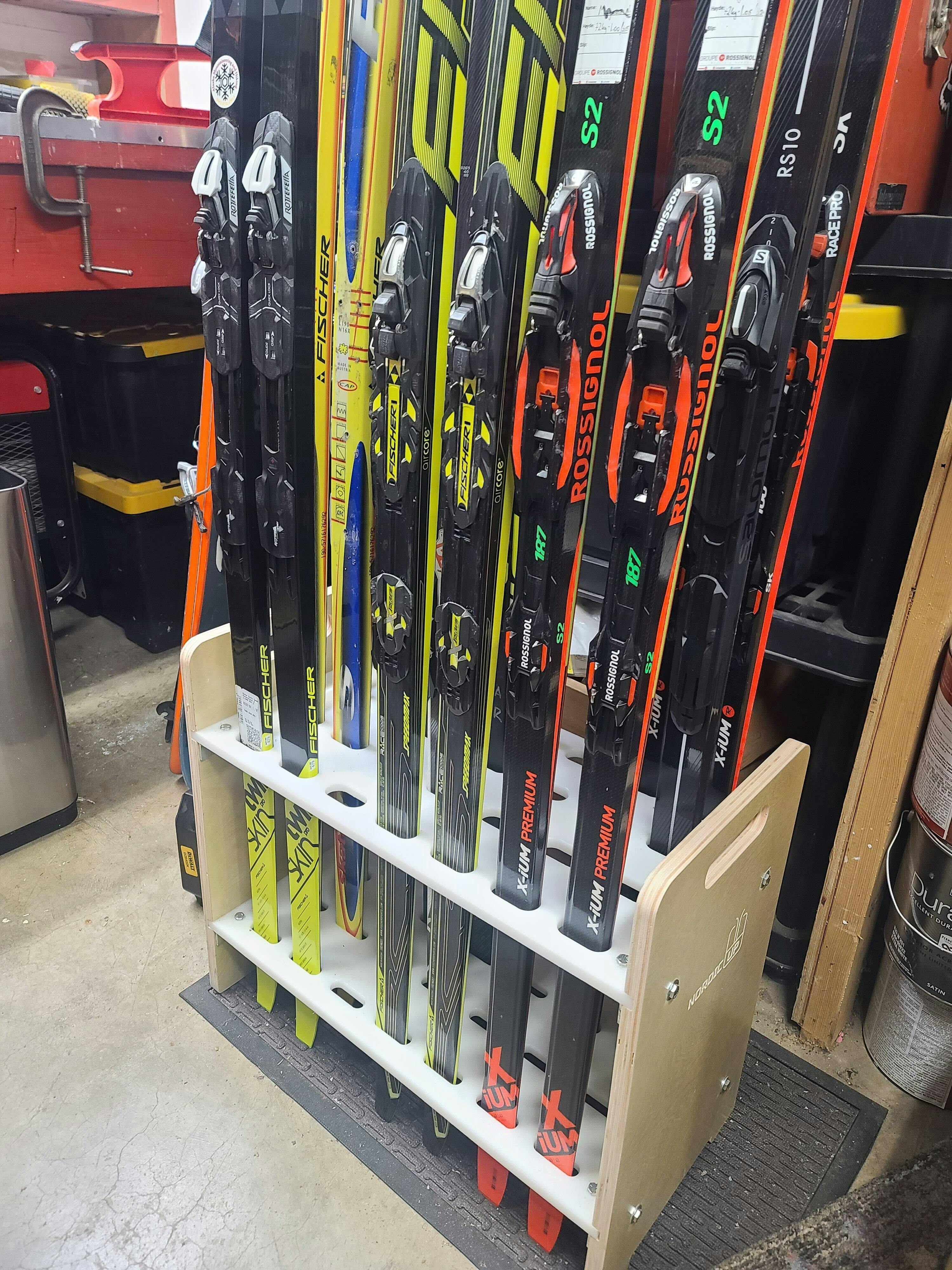 At home, Nordic ski stand to bring your waxing and organization to another level.